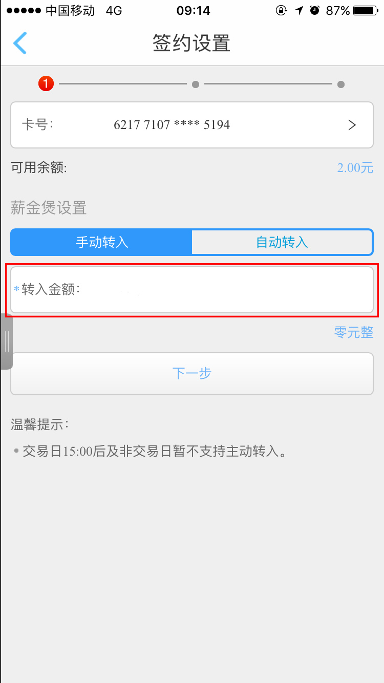 6、手動(dòng)轉(zhuǎn)入不小于1元的金額