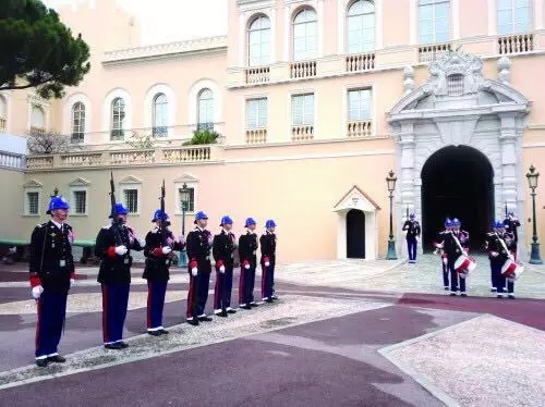 現(xiàn)任摩納哥大公阿爾貝二世,是前任大公蘭尼埃三世與格蕾絲·凱利之子。摩納哥王宮位于國境內(nèi)的一座山頂。每天中午12點(diǎn)左右,都會有衛(wèi)兵換崗儀式。雖然這個國家的王宮衛(wèi)隊(duì)僅有寥寥幾十人,但并不影響衛(wèi)兵們專注嚴(yán)肅地完成任務(wù)。正午時分,隨著略顯喜感的王家樂隊(duì)演奏的進(jìn)行曲響起,一組衛(wèi)兵從不遠(yuǎn)處走來,與正在執(zhí)行任務(wù)的另一組衛(wèi)兵相互敬禮,并進(jìn)行儀式:舉槍,托槍,放槍;舉槍,托槍,放槍……如此反復(fù)十幾輪,其間伴隨著衛(wèi)隊(duì)長富有節(jié)奏感的口號聲。在場的觀眾都被逗樂了。作為來到摩納哥必看的項(xiàng)目之一,這個換崗儀式能給人帶來足夠的歡樂。