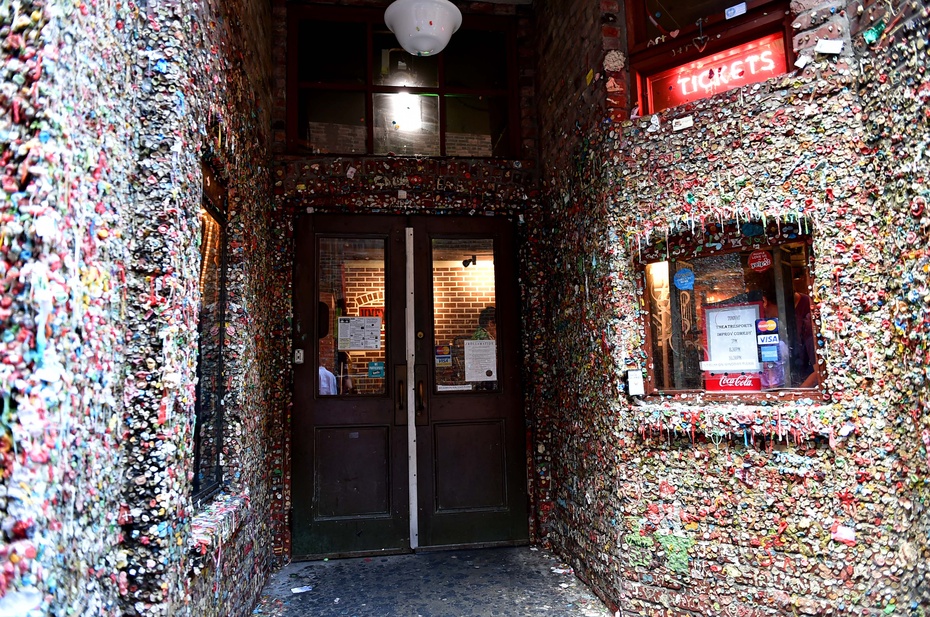 西雅圖的口香糖墻名列世界細菌最多的五大景點中的第二位,西雅圖市場劇院有一項古怪的傳統(tǒng),雖然很臟但挺有趣的:一面滿是口香糖的巨墻。在上個世紀(jì)90年代,旅行者們開始在排隊等候的時候把他們嚼過的口香糖粘在這面墻上,十年以來形成了一道五彩繽紛但有點讓人反胃的獨特風(fēng)景。一些大膽的游客甚至還把他們嚼過的口香糖捏出形狀來。