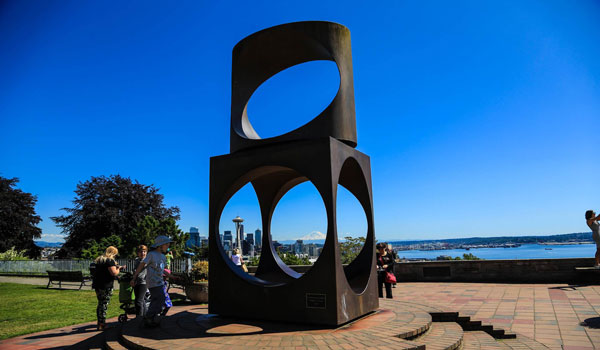 凱瑞公園是拍攝西雅圖夜景的最佳地點,從這里望向市區(qū),太空針?biāo)瓷先ズ褪袇^(qū)的高樓重混合在了一起。夕陽的金色鍍在摩天大樓黑灰次第的樓面上,凝重里更顯出輝煌。太空針極其流暢的建筑風(fēng)格和雪白墻面在這個背景的襯托下,忽然顯得分外的浪漫。喜歡攝影的游客可以到這里來汲取最全景的西雅圖。如果足夠有耐心,可以于黃昏時在山上看著天色慢慢變暗,從橙色變成淺藍(lán),再變成深藍(lán),最后變成紫色。一個人站在高處看著城市慢慢染上燈火的光輝,就會在心里想,世界上怎么會有這么一個城市,可以滿足人們對美好生活所持有的全部臆想,讓人無限期望擁有這千百盞燈的其中一盞。西雅圖諸多城市及太空針?biāo)⒗啄釥柹降娘L(fēng)景明信片都是在此地拍攝的。