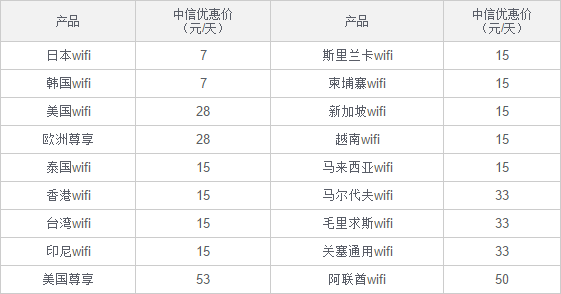 4.持卡人需在本頁二維碼通過中信信用卡進(jìn)行訂購可享受減免WiFi租金。
